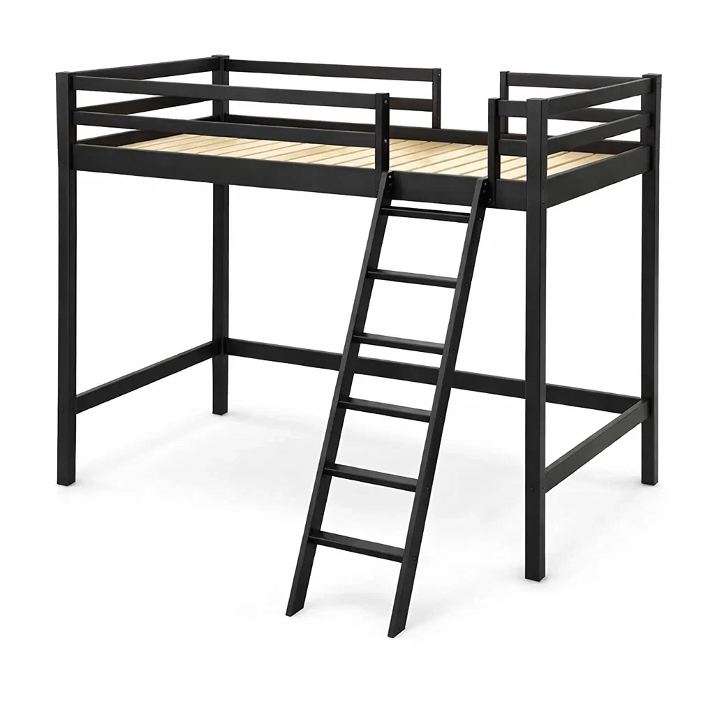 Hochbett metall mit holzlatten schwarz 198 x 142 x 172 cm